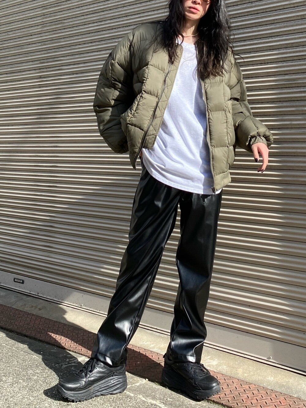 Chikashitsu + style 【Chikashitsu + SELECT】 quilting down jacket ¥9,800+tax 【Chikashitsu + SELECT】 raglan sleeve tee ¥4,800+tax 【Chikashitsu + SELECT】 leather pants ¥6,800+tax