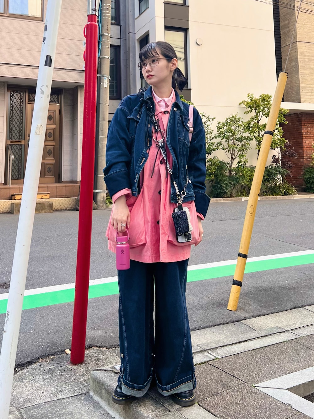 春といえばピンク✴︎ ピンクコーデをしてると気分が上がって足取りが軽くなります🐈 デニム×ピンクも好きだな