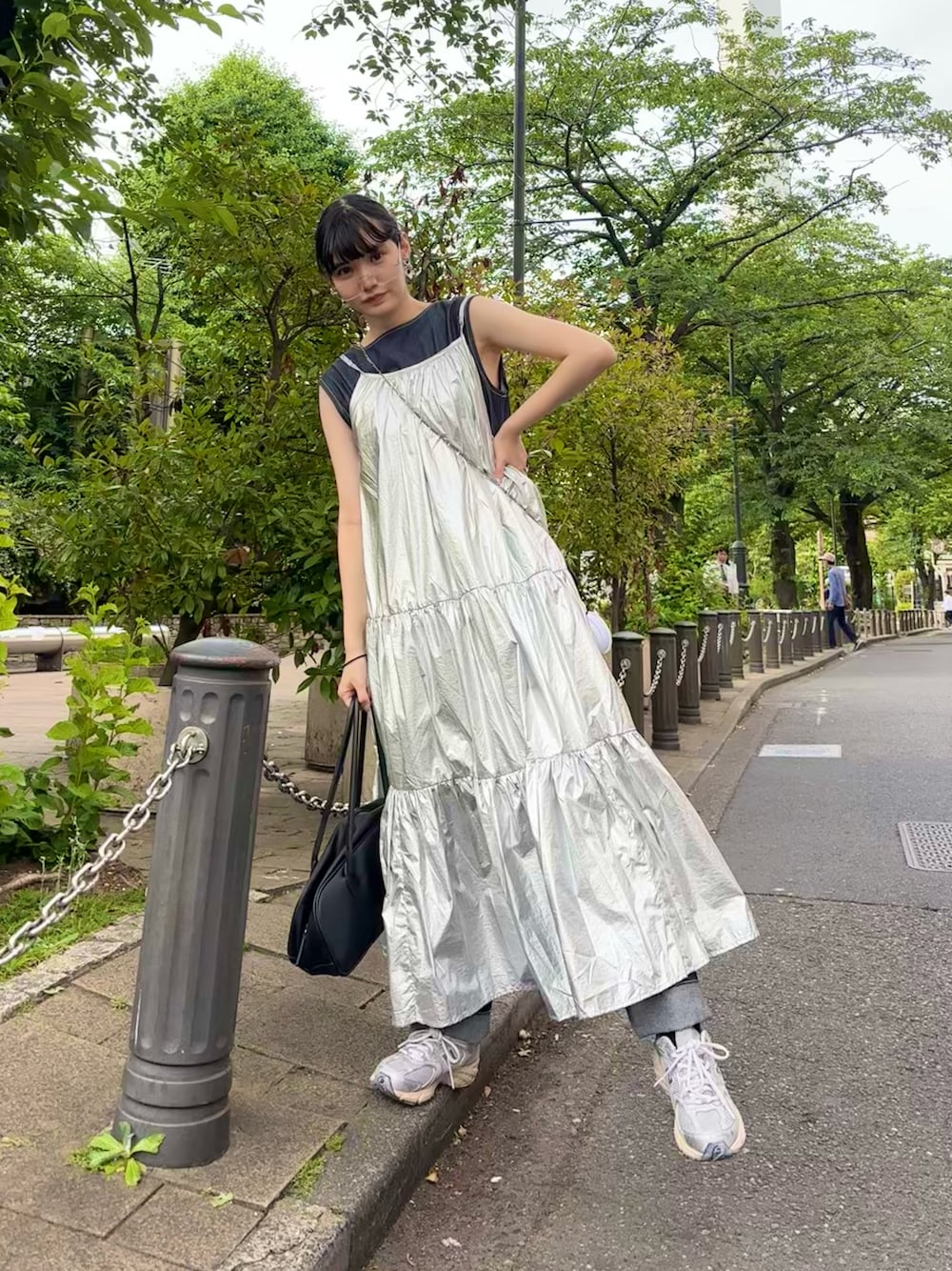 荒川ちかのワンピース「tiered cami onepiece/ティアードキャミワンピース」を使ったコーディネート