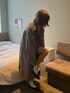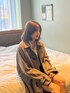 GUのメンズトレンチコート×シャツ×ミニスカート メイクはシンプルにマットがかわいい