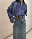 chikazeのデニムスカート「[3サイズ展開][全骨格美脚見え]すっきりハイウエストデニムロングタイトスカート」を使ったコーディネート