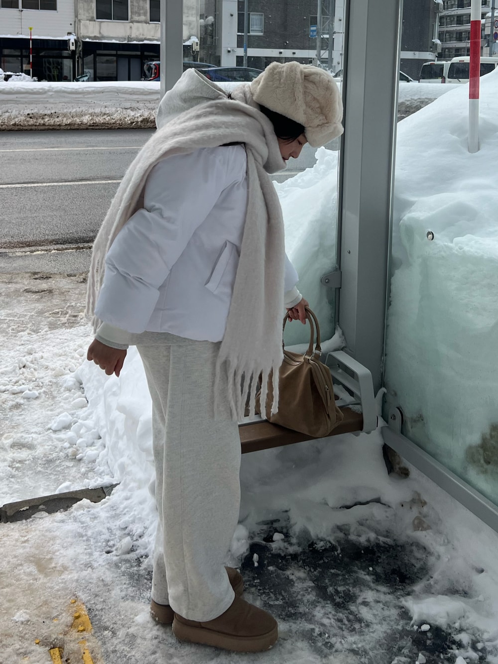寒いからあたたかい白のダウンと裏起毛のスウェットで寒さ対策!! instagram @_chikaze0209