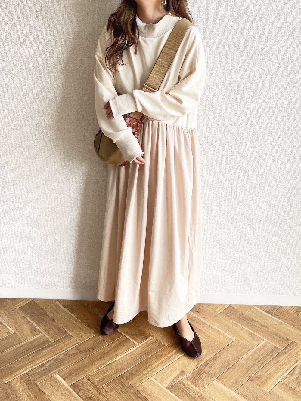 c h i k i 𓅰のワンピース「ハイネックドッキングギャザーワンピース」を使ったコーディネート