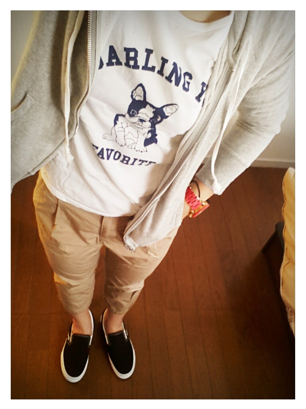 トップス: FREDY&GLOSTER スニーカー:VANS やっぱりこのTシャツがお気に入りです♪ VANSのスリッポン初卸し("⌒∇⌒")