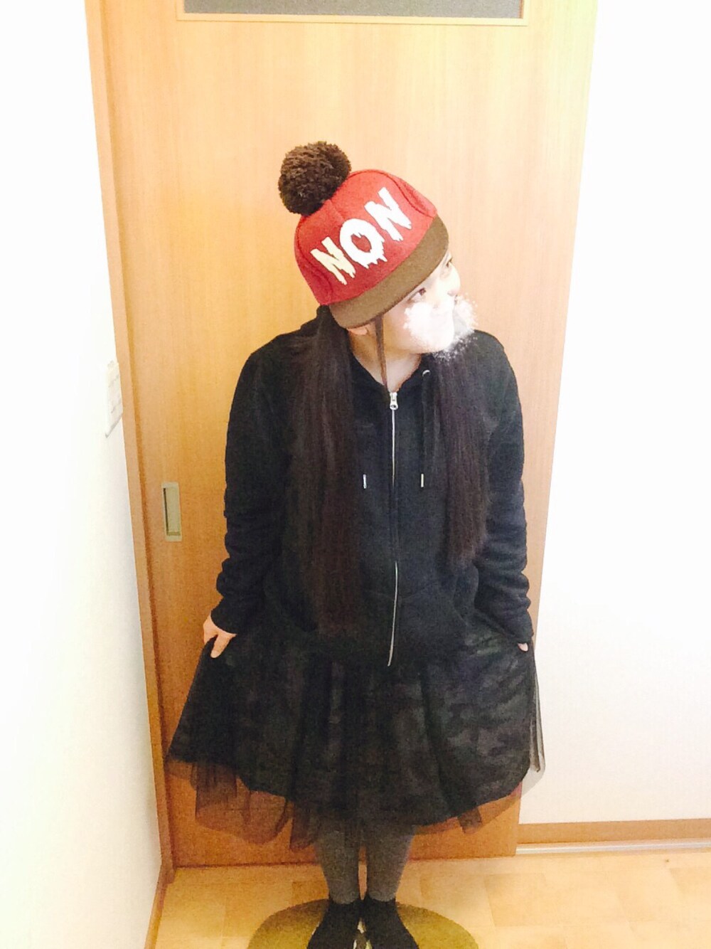 今日は前髪のメンテナンスをしてきました…切り過ぎてしまい、おでこ全開です…寒いのに(涙) 迷彩のチュールスカート履いてみました!グレーのスパッツに合いますね☻ 帽子はてっぺんに付いたボンボンがお気に入り♡ ♡台湾で1000円位でした♡ スカートコーデ♡ ♡