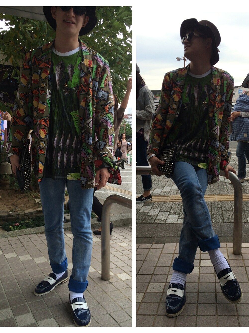 先週の西条酒祭り行ったときのです! 「YOUは何しに日本へ?」って番組のレポーターが来ていて友達がインタビュー受けてました\(^o^)/ ひょっとしたら映るかも笑 シルクの総柄ジャケットはUSAの80'sのです〜 総柄ジャケットにあえてド派手な柄のインナー持ってきたけど意外とはまった