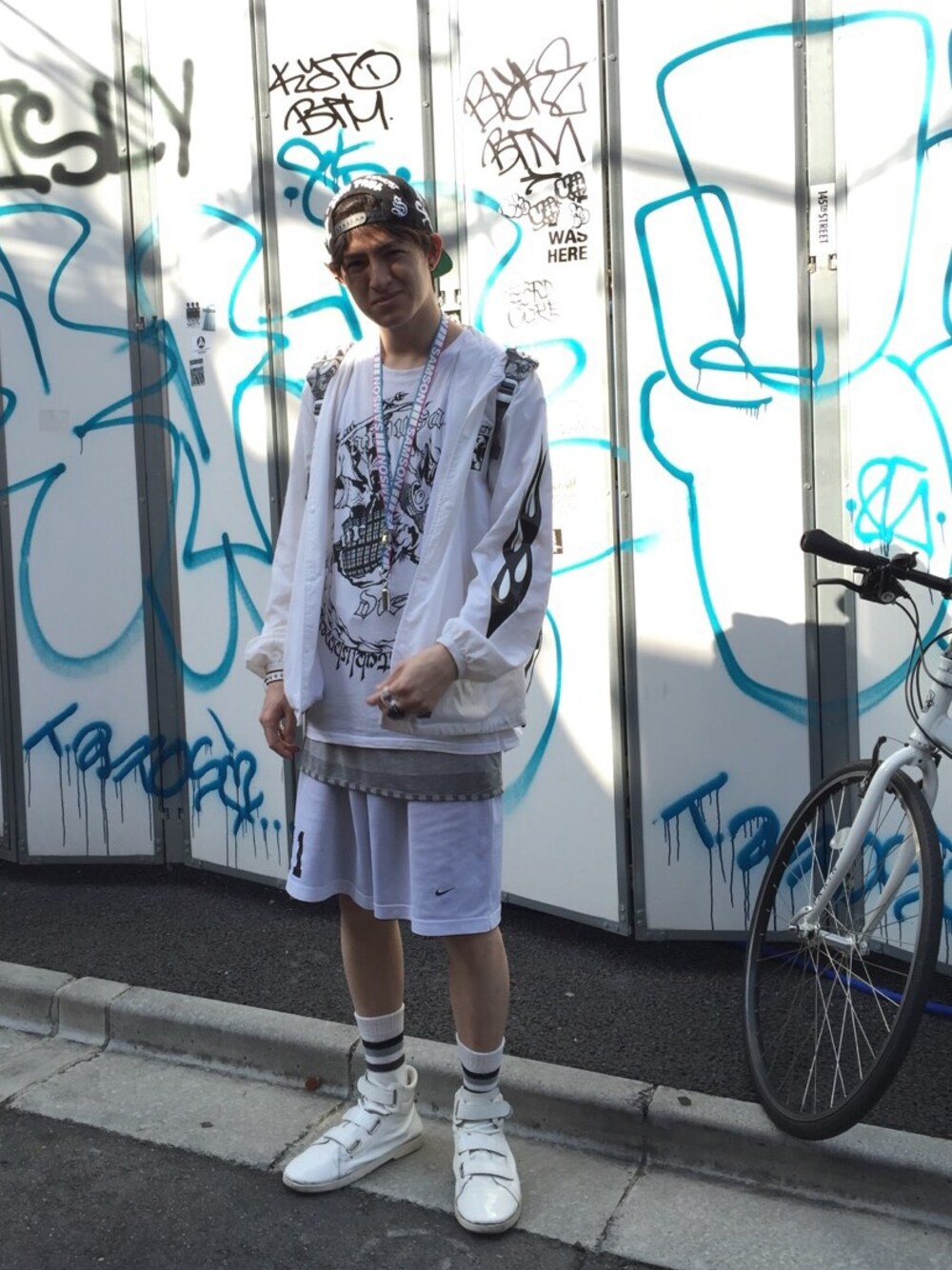 下に着たロングのインナーはHORACEでリュックはシャノンとイーストパックのコラボのです ニンカンプープの限定コーチジャケットは後ろのアラビア語とサイドのヤンキーっぽさが良い感じ😈