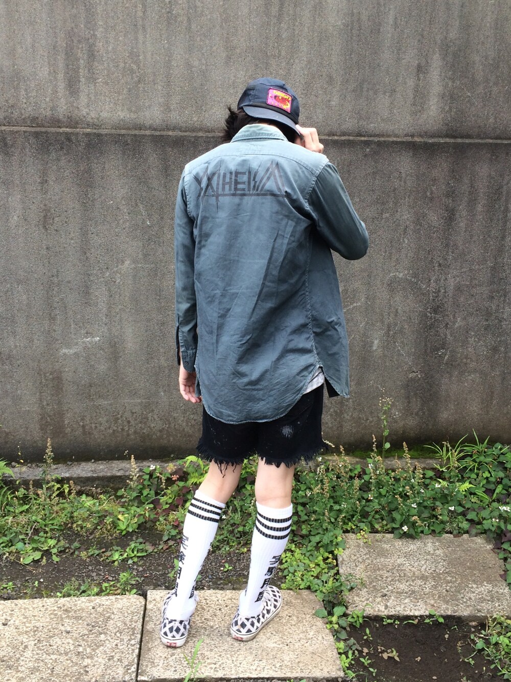 デニムのロングシャツにデニムの短パンってスタイル、好きかも∩^ω^∩