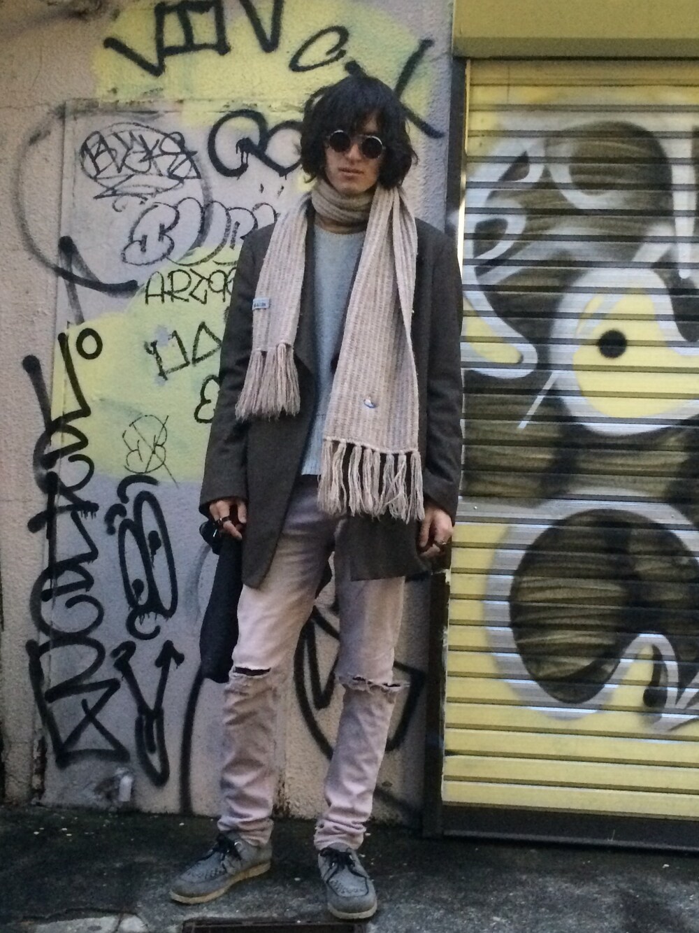 ヴィヴィアンのダブルのコートとマフラーに、敢えてデニムを合わせて少しパンクっぽさも意識しました☺️