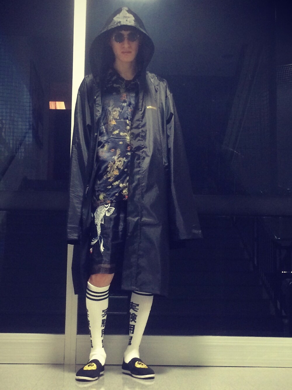 ヴェトモンのレインコート、あえて和柄で合わせてみた😈