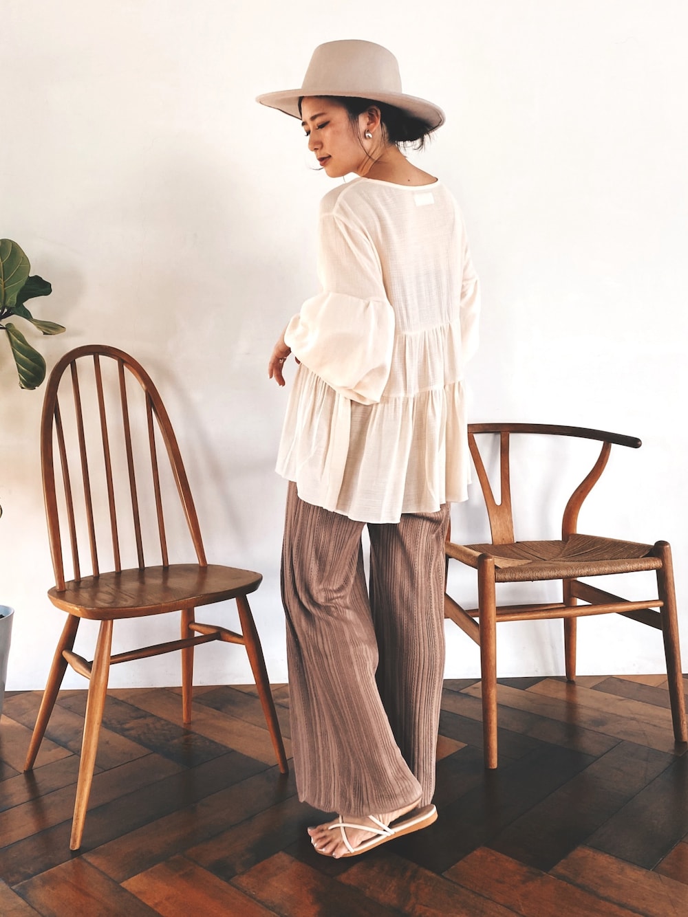 ちーかまのシャツ/ブラウス「【Holiday】楊柳ティアードブラウス」を使ったコーディネート