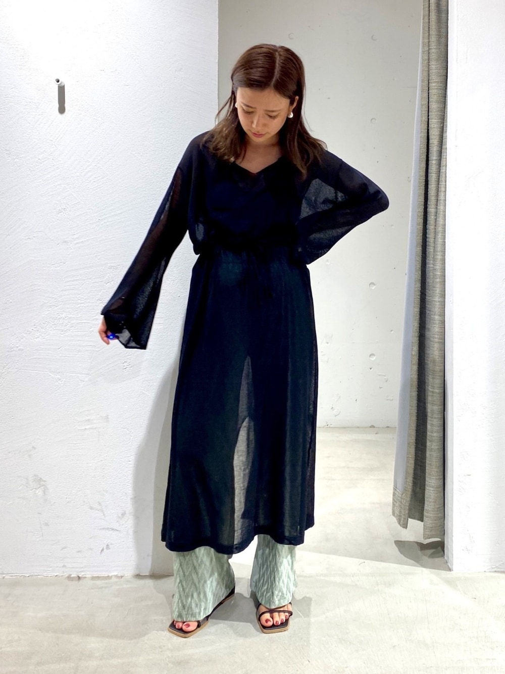 ちーかまのワンピース「シアーニットカフタンドレス」を使ったコーディネート