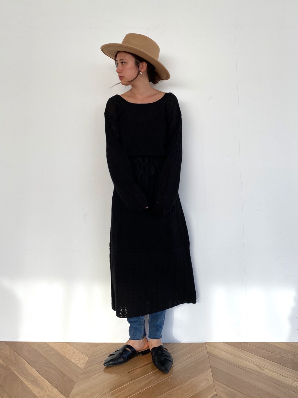 ちーかまのワンピース「透かし編みパッチワークロングワンピース」を使ったコーディネート