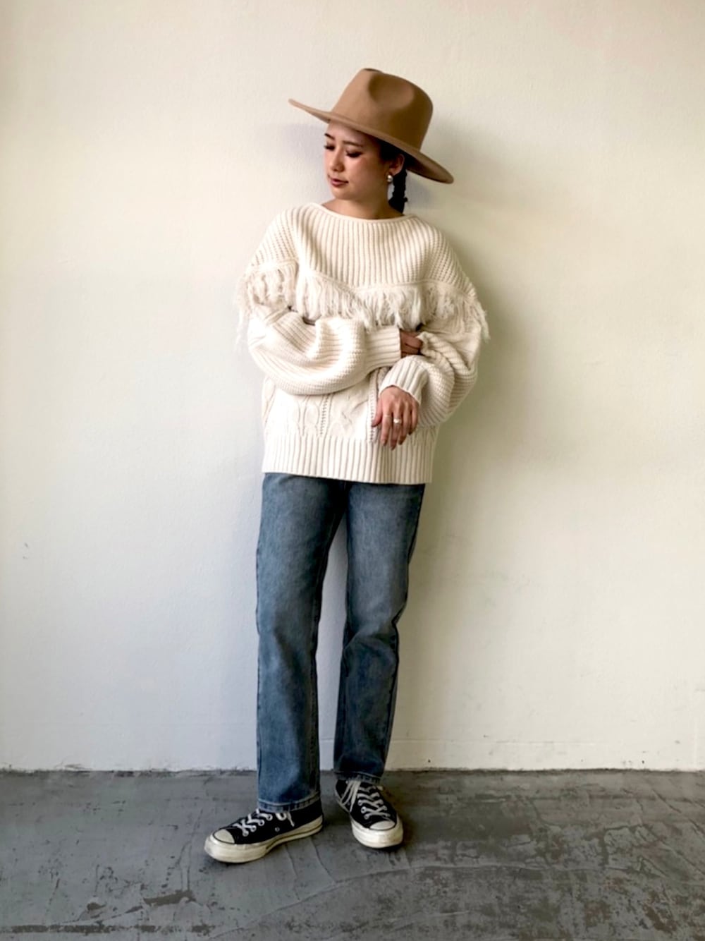 こんにちは🌞 本日1000円クーポン出ています❣️ 着るだけで可愛いフリンジニット🥺💗 デニムとハットと合わせて ホリデーらしいコーデに🙈💗 インスタやってます❣️ ▶︎chica_404