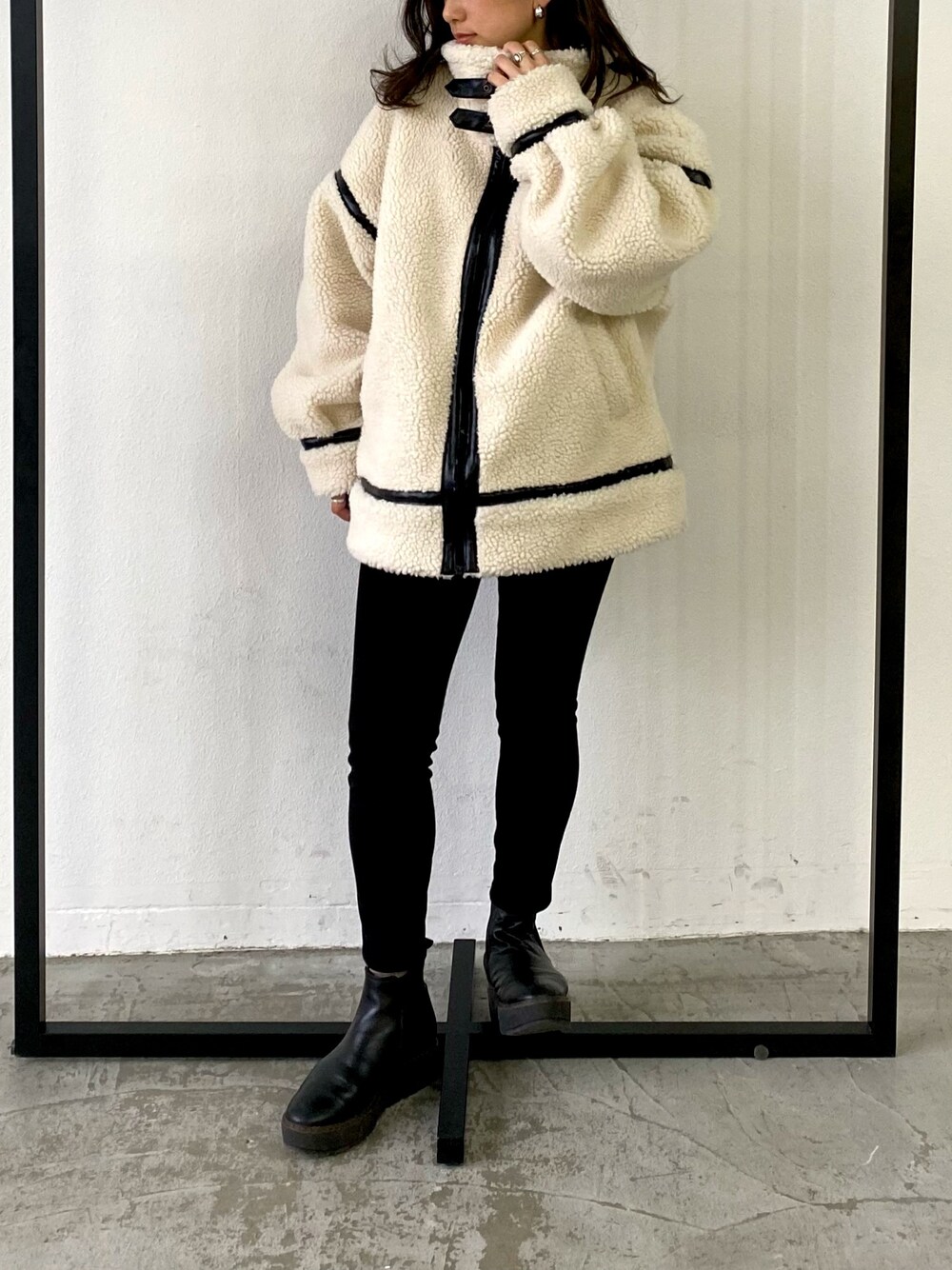 ちーかまのムートンコート「パイピングボアムートンブルゾン」を使ったコーディネート