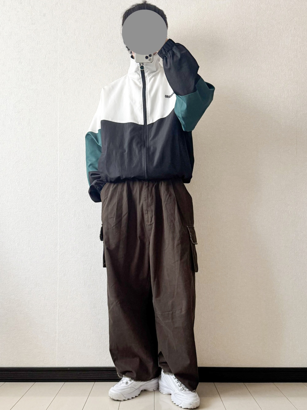 雨降ったから撥水加工のあるナイロンジャケットを 上下ともゆとりあるから動きやすい!