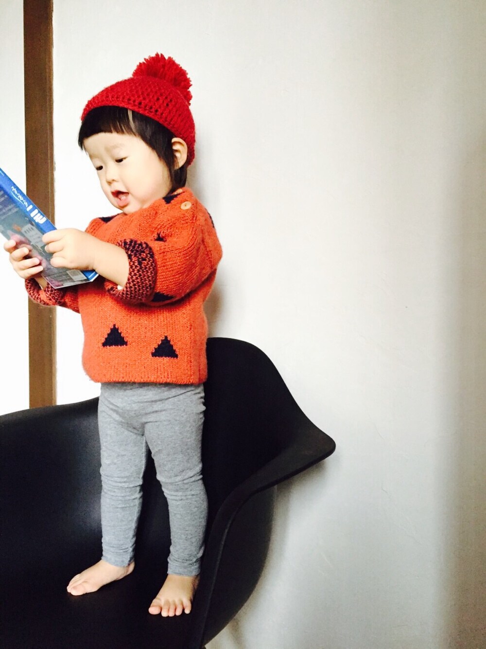 今日のむすめ☺︎ 寒いからBOBOのニット😌 今からニモ観るよ〜🐠 たぶん五分で飽きるね😑