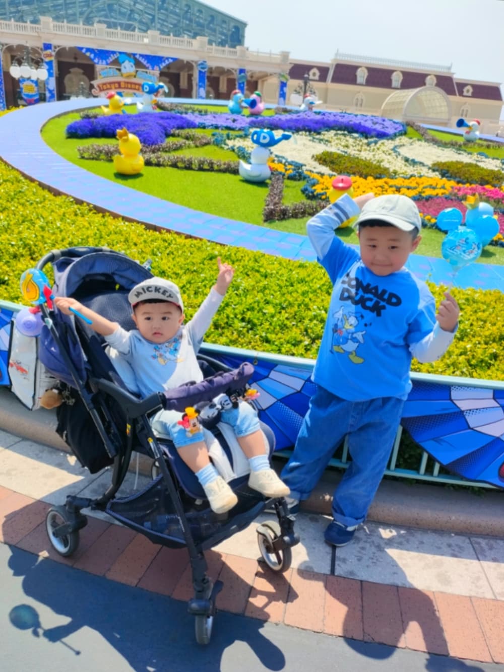 22℃☀️ @TokyoDisneyLand🏰🎡🎠❤️ パパがお休みを取れたので少しフライングでG.Wをスタートして平日にインパ💗✨ 推しな訳では無いのですが、たまたま去年も行けてたクワッキーダッグ時期だったので去年のドナルドのお洋服で着回しコーデです♡ 去年買いはぐったガーガーなるヤツ(名前不明w)もGETして楽しみましたー🪿🪿❤️ 下の子が成長と共に認知度が上がって楽しんでるのが目に見えて嬉しい♡♡ 親はイッツ・ア・スモールワールドのMARVEL導入に大興奮したりと充実でした😁♥️ 今回は沢山ショーを見て満喫🎶 あと、お子達は恒例サマーカットに✂️ ママも5年ぶりに前髪作ってみました🤪