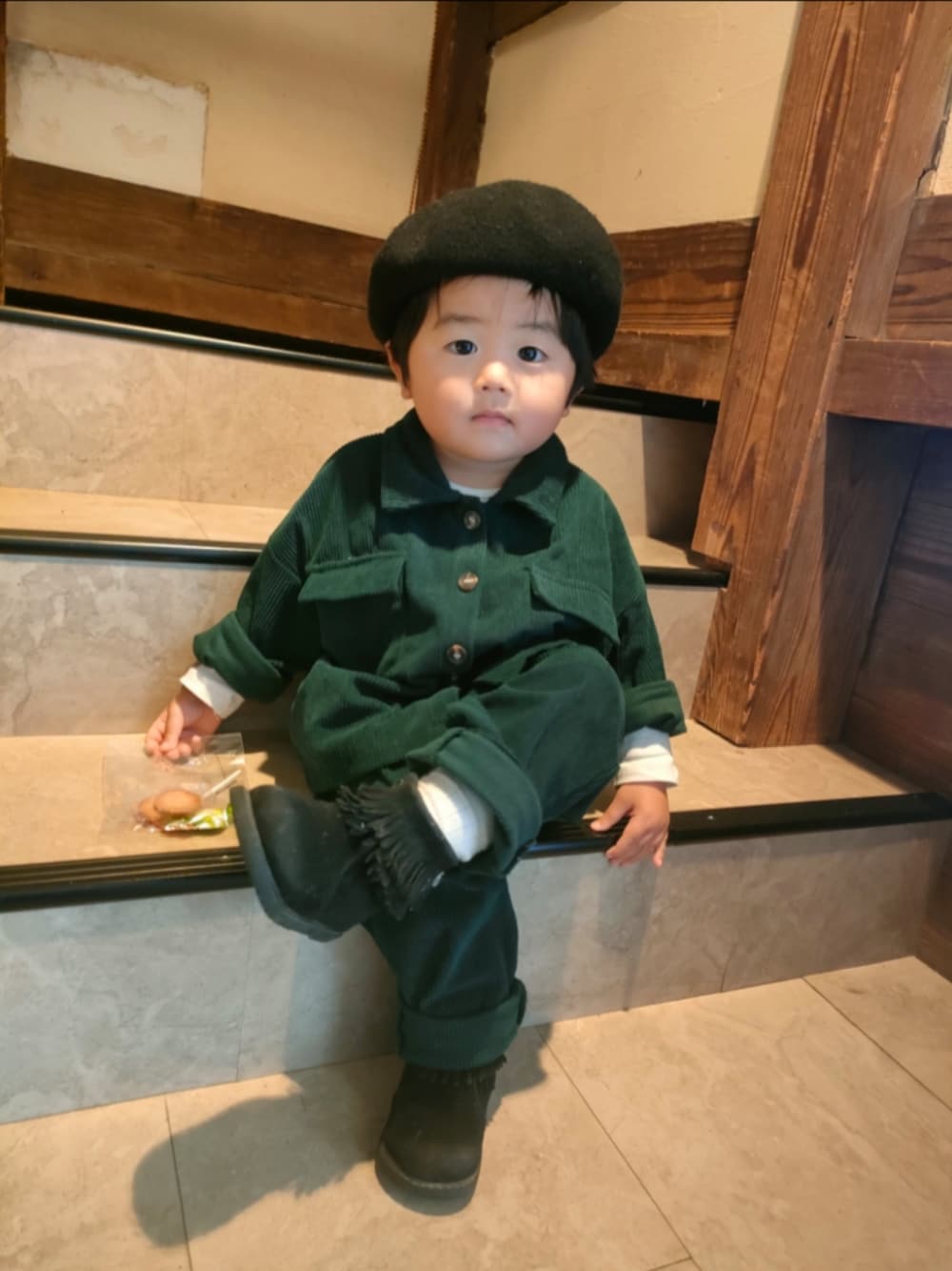 13℃☀️ LittleBrothers Coordinate❁ 以前も着せたグリーンコーデュロイのセットアップにブラック小物を合わせてほんのりシックにカッコよくコーディネイト❤️ 母と姉と一緒にとーーーっっても美味しいLunchを食べに行った日♡ 写真1.2枚目は突然「パパのマネっこしよーっッと🎶」と言って足を組み出したSHOT😂🤍 思わずお店の店員さんもお客さんも笑ってました🤣🤣🤣 パパよく足組んでるもんね😂 よく見てるなぁ〜🥰✨