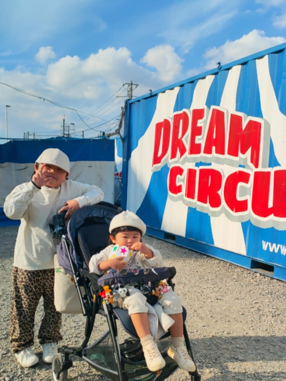 16℃☀️ @DREAM CIRCUS🎪🍿💙🤍 やっっっっとこさ復活した3連休初日🥹✨ レオパ×ホワイトでコーデして初めてのサーカスを見に行ってきました🤡💚 メチャクチャ楽しくて大大満足🥳💗 (イケメンマッチョにお姫様抱っこしてもらって誰よりも笑顔溢れる私😂) モヒカンピエロおじさんにも「オニィーチャン(子供達)カッコイイネ!!!ファーーーッション!!!!!(FASHION)🫵✨」と子供達のコーデも褒めてもらいましたとさ😁❤️