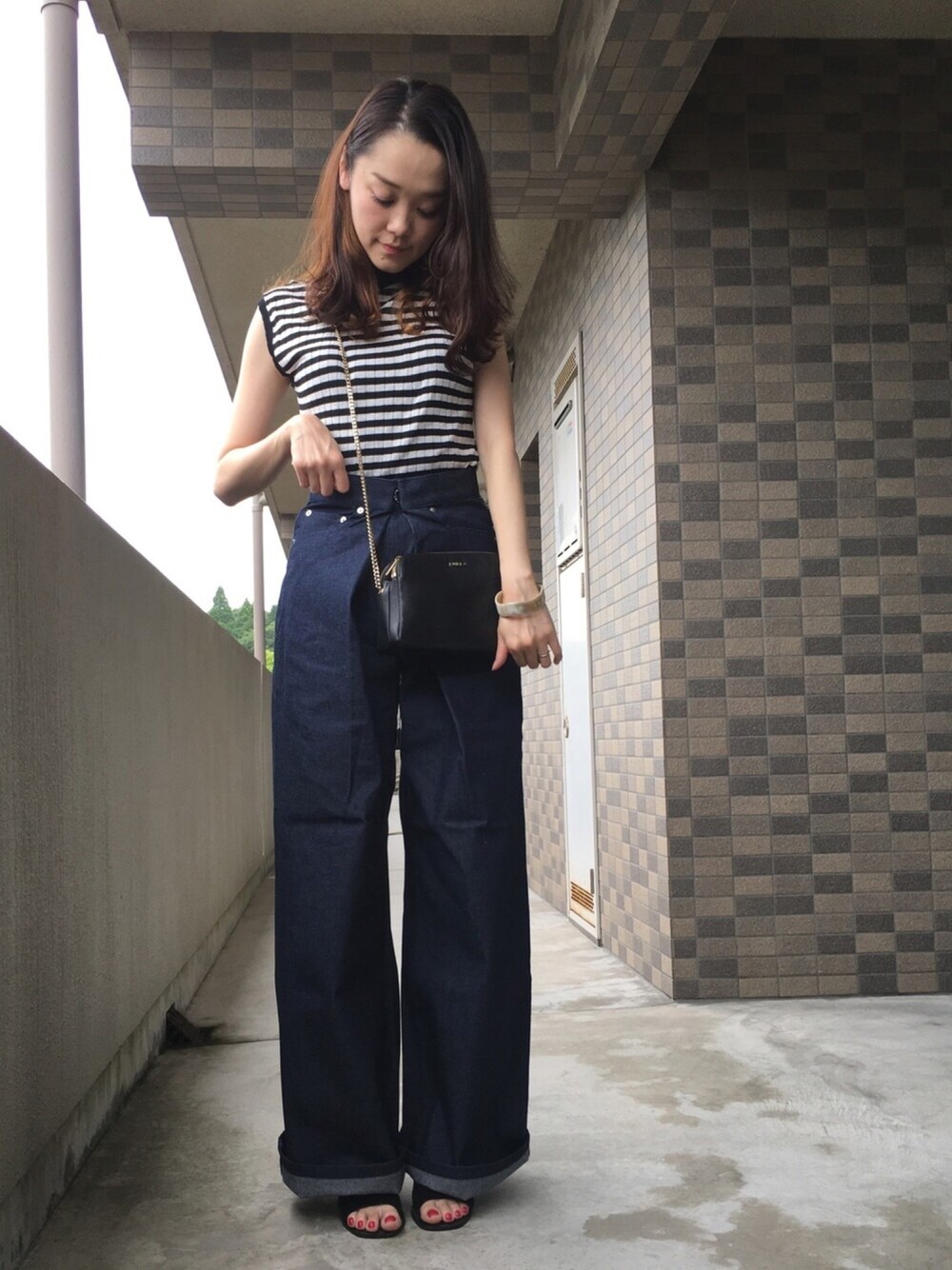 chima*のデニムパンツ「JOHN LAWRENCE SULLIVAN ノンウォッシュデニムワイドパンツ」を使ったコーディネート