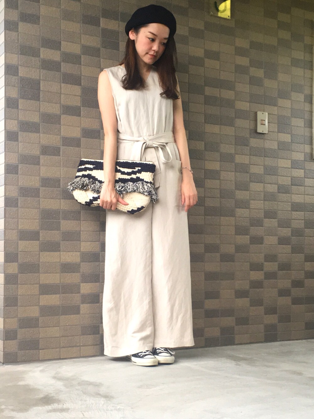 ご無沙汰しております☺︎ Mila Owenのオールインワンを ベレー帽×スニーカーでカジュアルに❤︎ オールインワンの時は小物使いで雰囲気変えていきたいー🤔 小物への物欲が増します。笑 Instagram.......lailaaa0701📷