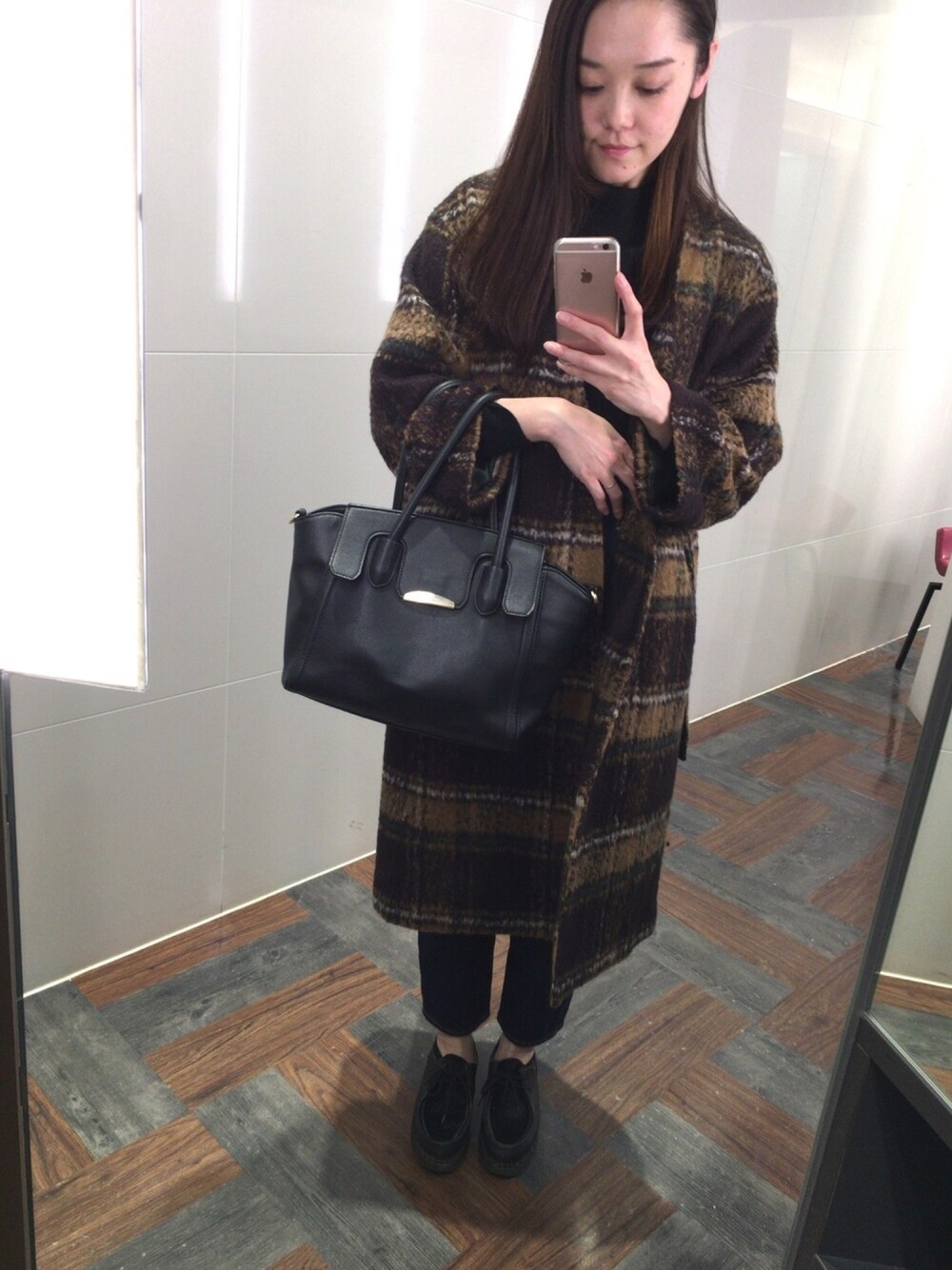 大きな柄のチェックコート❤︎ ノーカラーでスッキリ着れるし、ハイウエスト気味のベルト通してもかわいい! 素材のシャギー感もとてつもなくタイプ! 今日はストレートデニムとパラブーツでメンズライクに☺︎☺︎ Instagram.......lailaaa0701📷