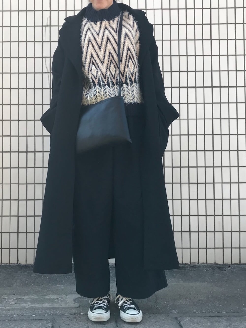 年末....... やはり黒率高め🐈 ///zara/// ロングコートは素材感もしっかりしてて、Lサイズにして、丈感も満足! シャギーのニットもうすーーーいベビーピンクとネイビーという組み合わせがとてもツボ❤︎