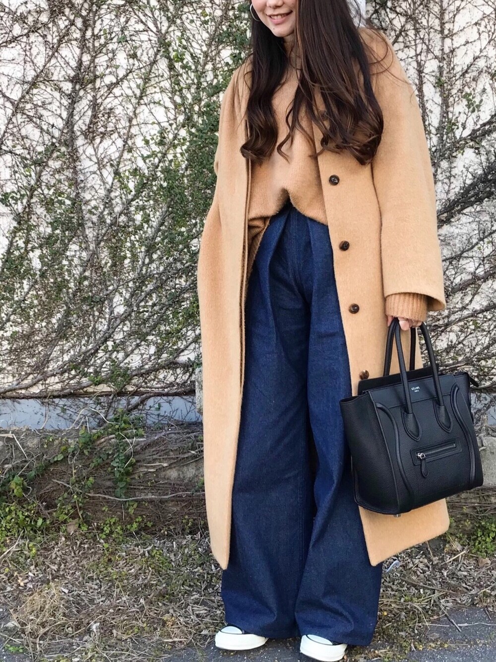 2019.1.27 寒かったけど、天気が良かったので、 ロングゆるゆるコーデ (雨の日は選ばない組み合わせ) zaraのニットも暖かいし、 mameのコートも暖かい❤︎ やっと、買えたct70! ブラックスエードで紐もブラック付き❤︎ Instagram...............lailaaa0701📷