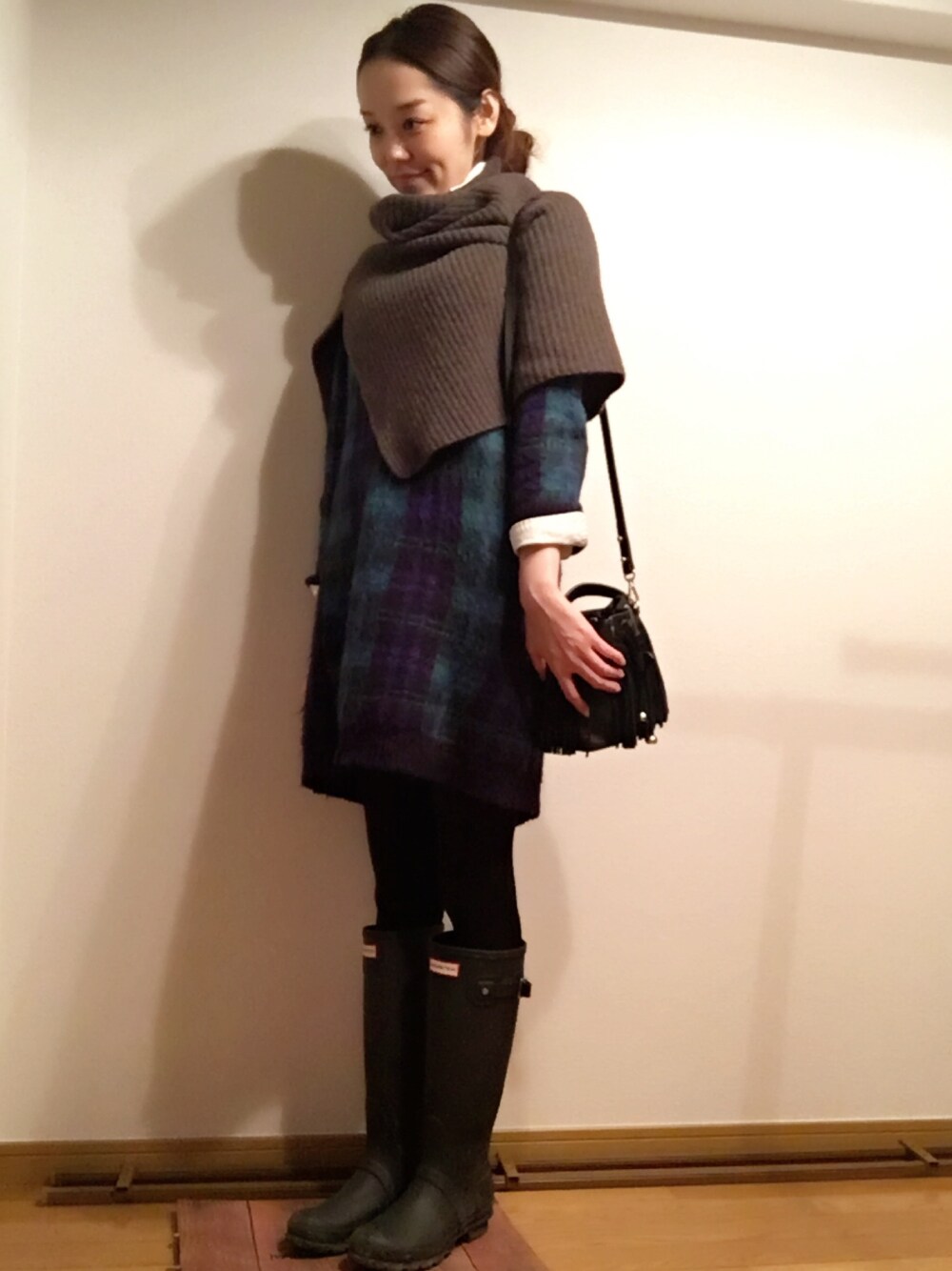 いつもお付き合いありがとうございます☺︎ 今日はすごく暖かくてアウターいらず‼︎ 朝雨だとハンターはいたのに駅着く頃にはあれ? 仕事終わる頃には晴天😂 チェックのワンピースは何年か前に誕生日に幼なじみに買ってもらったもの♡重宝してます✨