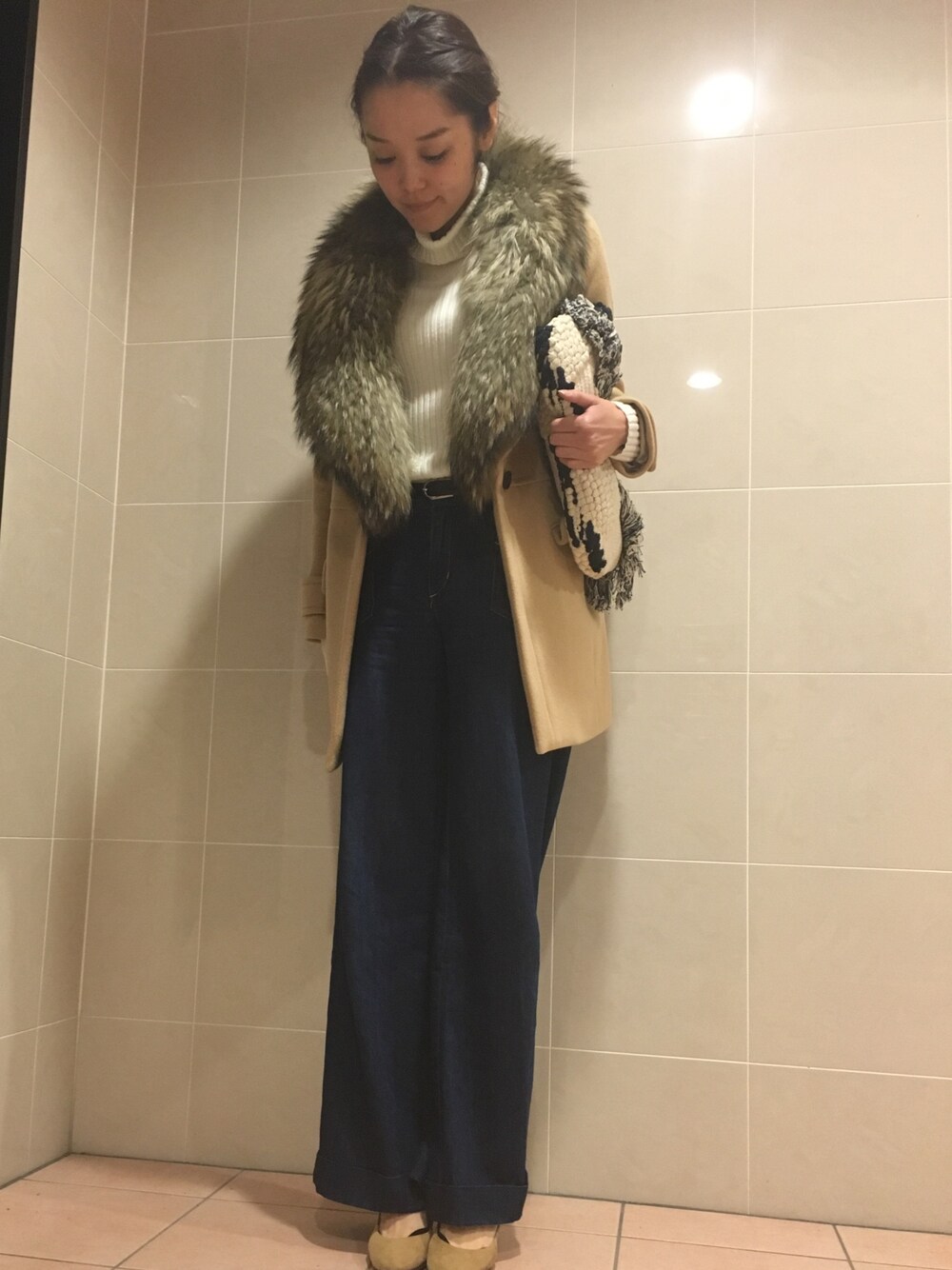 chima*のステンカラーコート「ファー衿付きウールコート」を使ったコーディネート