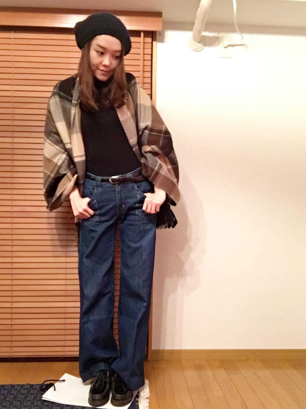 chima*のストール/ショール「RODE SKO チェックストール」を使ったコーディネート