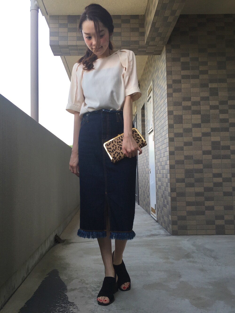 chima*のクラッチバッグ「レオパードクラッチ」を使ったコーディネート