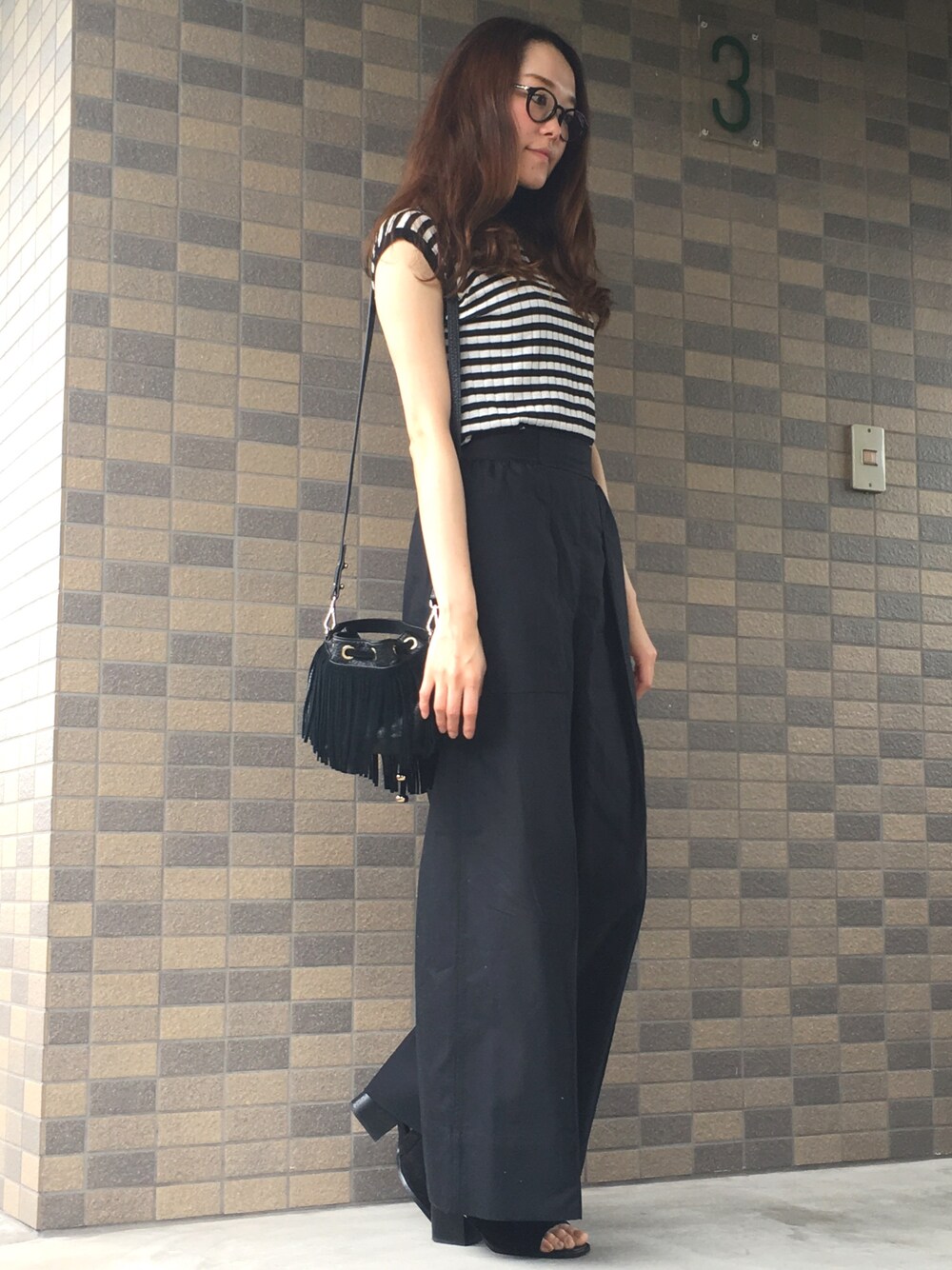 おはようございます☺︎ いいね、コメント、save、フォローありがとうございます✨嬉しいです♡ 本日もお付き合いください☺︎ 本日はモノトーン✴︎やはり色違いを買ってしまったAGのトップス♡ボーダー好きとしては買っておかないとな一枚。首の部分だけ真っ黒なのがまたツボです。 そして!ずっと欲しかったUNIQLO×ルメールコラボワイドパンツ。付近のUNIQLOにはなくて昨日たまたま発見即購入しました♡ わかなちゃーん♡とりあえず黒買ったよー♡笑