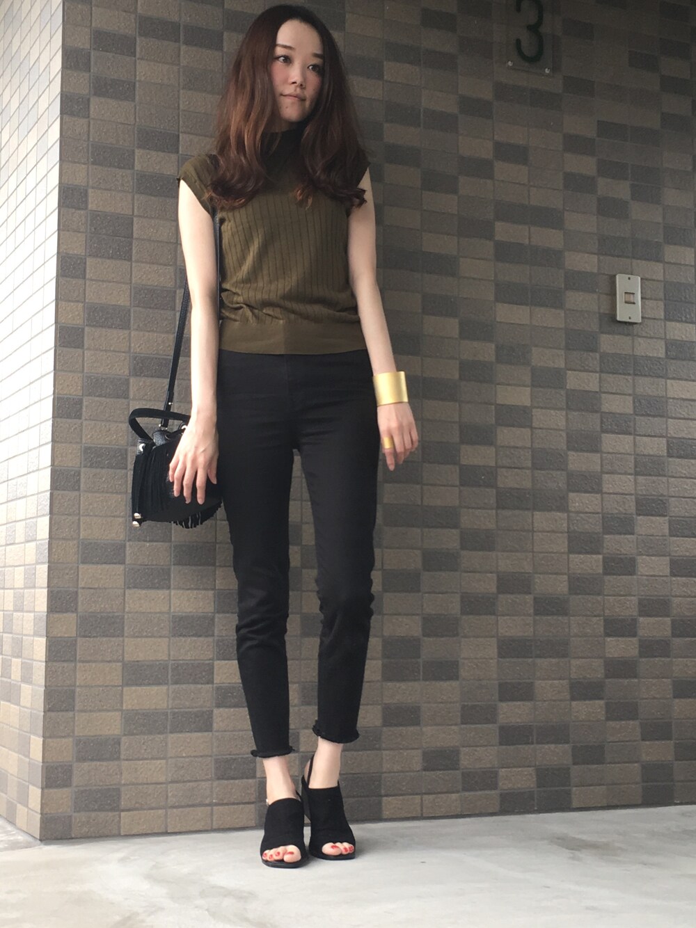 こんにちわ☺︎ いつもお付き合い頂きありがとうございます♬いいねもsaveもフォローもコメントも喜んでおります☺︎♡ カーキ×ブラックな本日。 シンプルにかっこよく。のつもりです😂 ゴールドアクセをポイントに☺︎ カーキ×ゴールドかわいいですよね♬