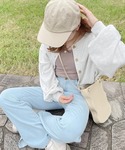 すちゃのデニムパンツ「深めのタックが印象的。ハイウエストデニム&チノ タックワイドパンツ」を使ったコーディネート
