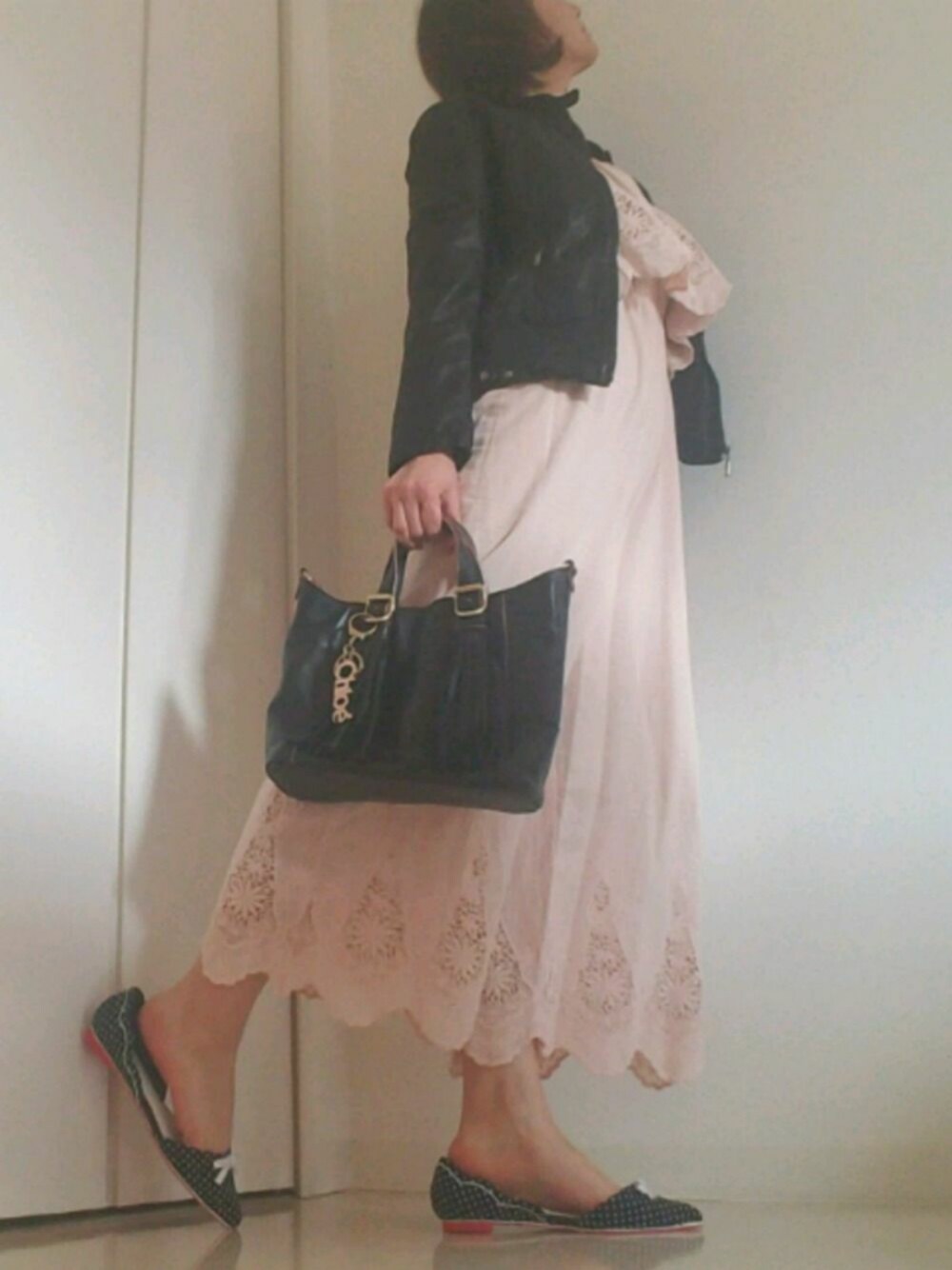 ご覧いただきありがとうございます🙇 いきなり暑くなって。。。☀ もぅ何を着ていいか分かりません😩 RESEXXYのオールインワンは、 珍しくピンク😳 普段、まずピンクの服など買わないんだけど、 ベージュ系の落ち着いたピンクだし❗ カットワークのレースがツボでつい。。。❤ たまには。。いいかなぁと。。。😅 すぐ脱げる系のオールインワンは、楽チンなので大好き💮 ソウルで買ったラムレザーのマットなライダースと合わせたくて➰☺ またシンプルに甘辛mixです🎵