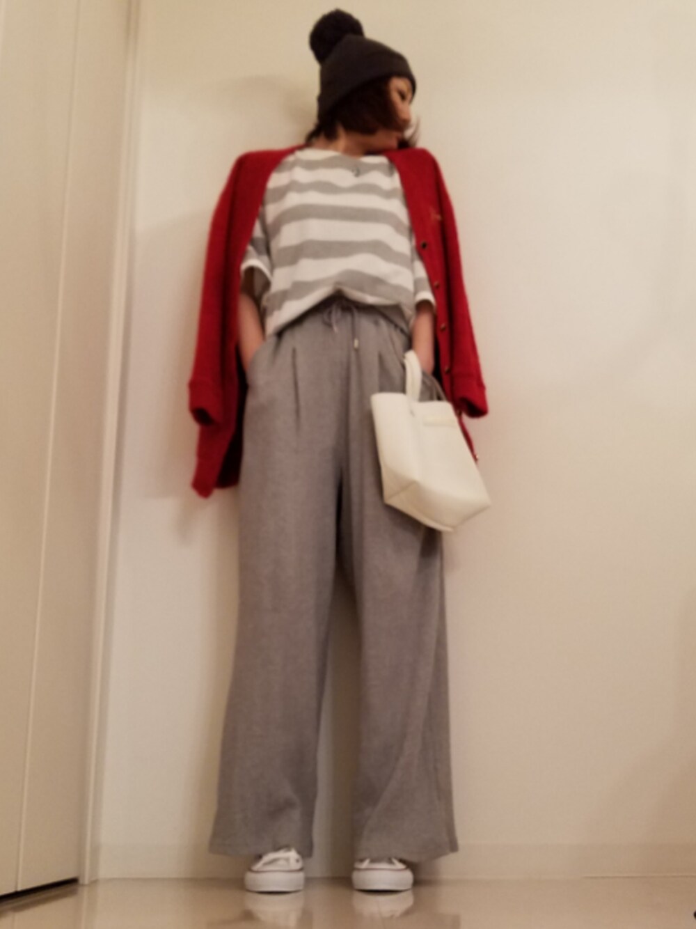 ご覧いただきありがとうございます🙇 さっきの着まわし🌠 着まわしと言うべきか。。。😅 ニットと帽子とバッグの色を変えただけ。。。😅😅 10年くらい前に買った赤のニットが何となく着たくなった❗ 落ち着いた暗めの赤❤ 赤なんて選ばないんだけど。。。 店員さんに薦められて買ってみたヤツ☺ たまに。。。 昔買った服、無性に着たくなる時あるんですよね😆 なので、なかなか捨てられず。。。🌀 増えていく一方です😭