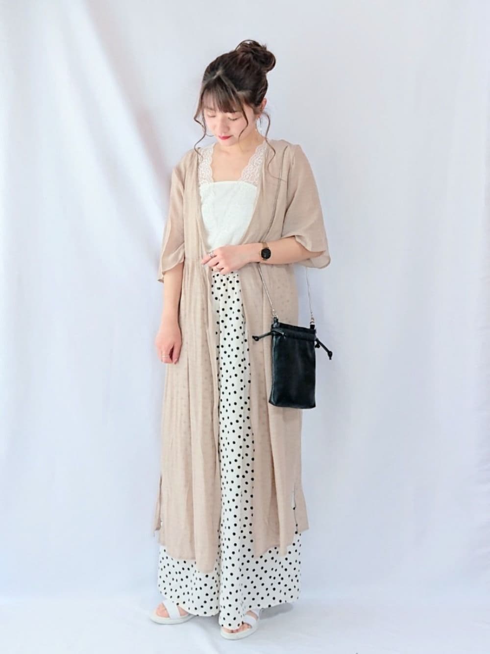 ドットのワイドパンツ着回し♥️ chimo.