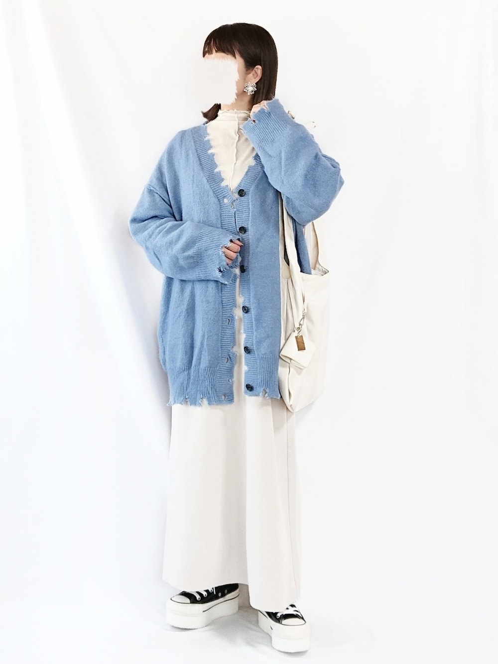 chimochiiのニット/セーター「5G破れ加工 両A面プルオーバー」を使ったコーディネート