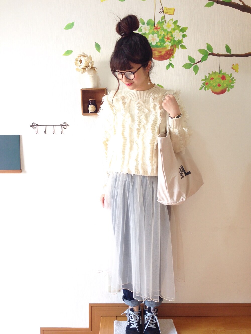 チュールスカートは ペチとチュールの部分が別々になっていたので パンツに重ね合わせてみました.○ chimo.