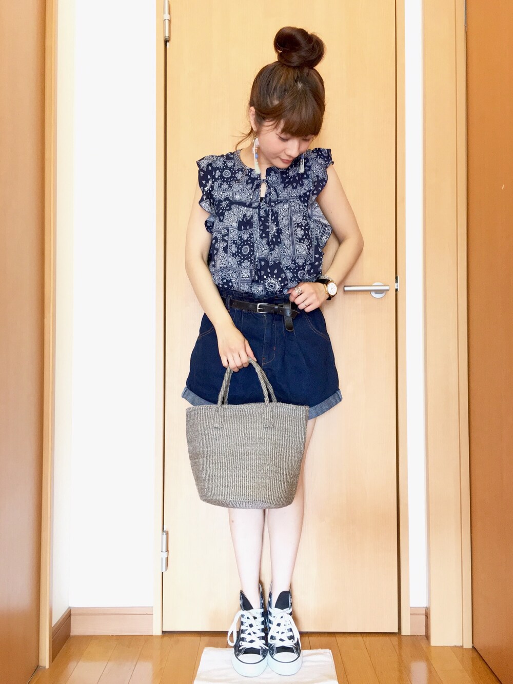 chimochiiのシャツ/ブラウス「バンダナ柄フレアブラウス」を使ったコーディネート