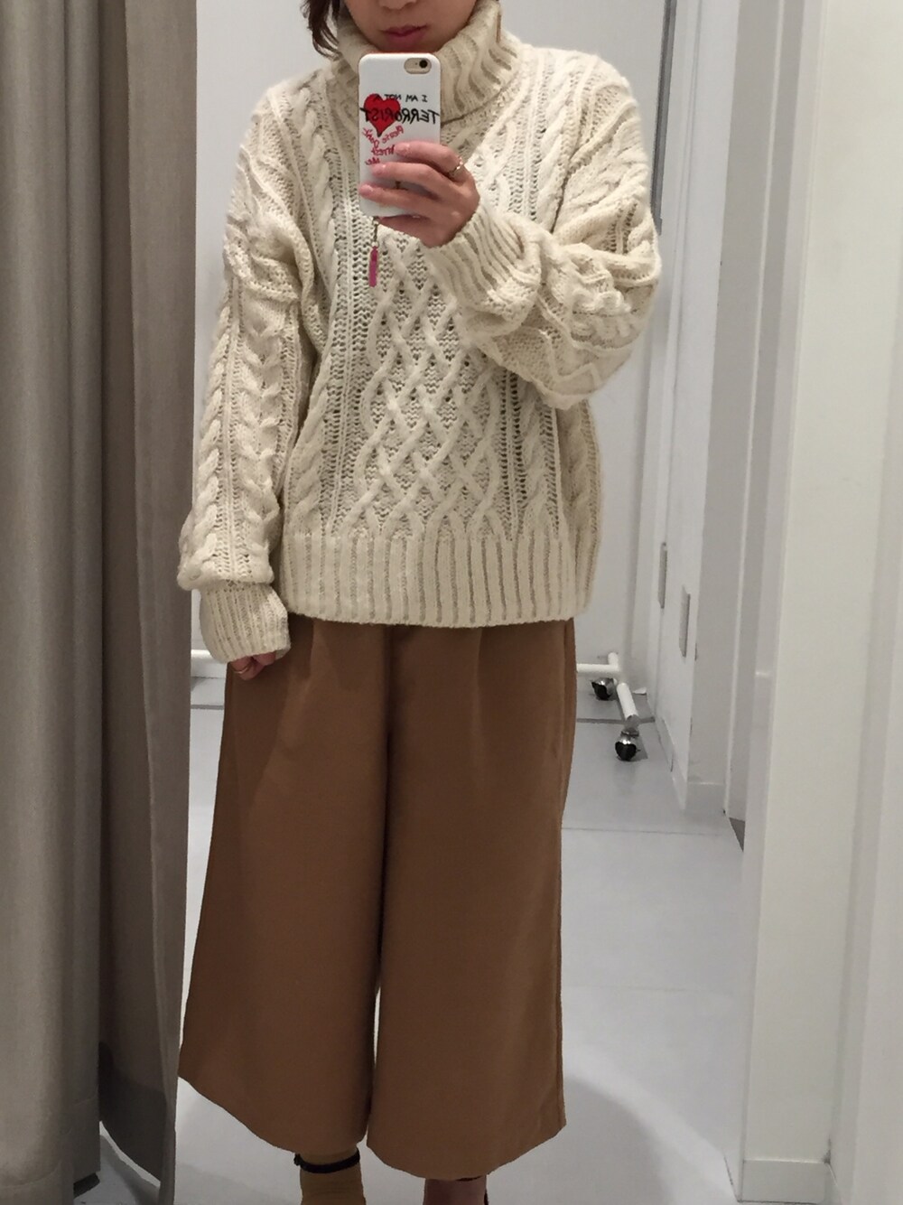 ゆるニット×ウールガウチョでゆるゆるコーデ☆*。 チビにも似合うチェスターコートを見つけたので、ニットと合わせたい♪