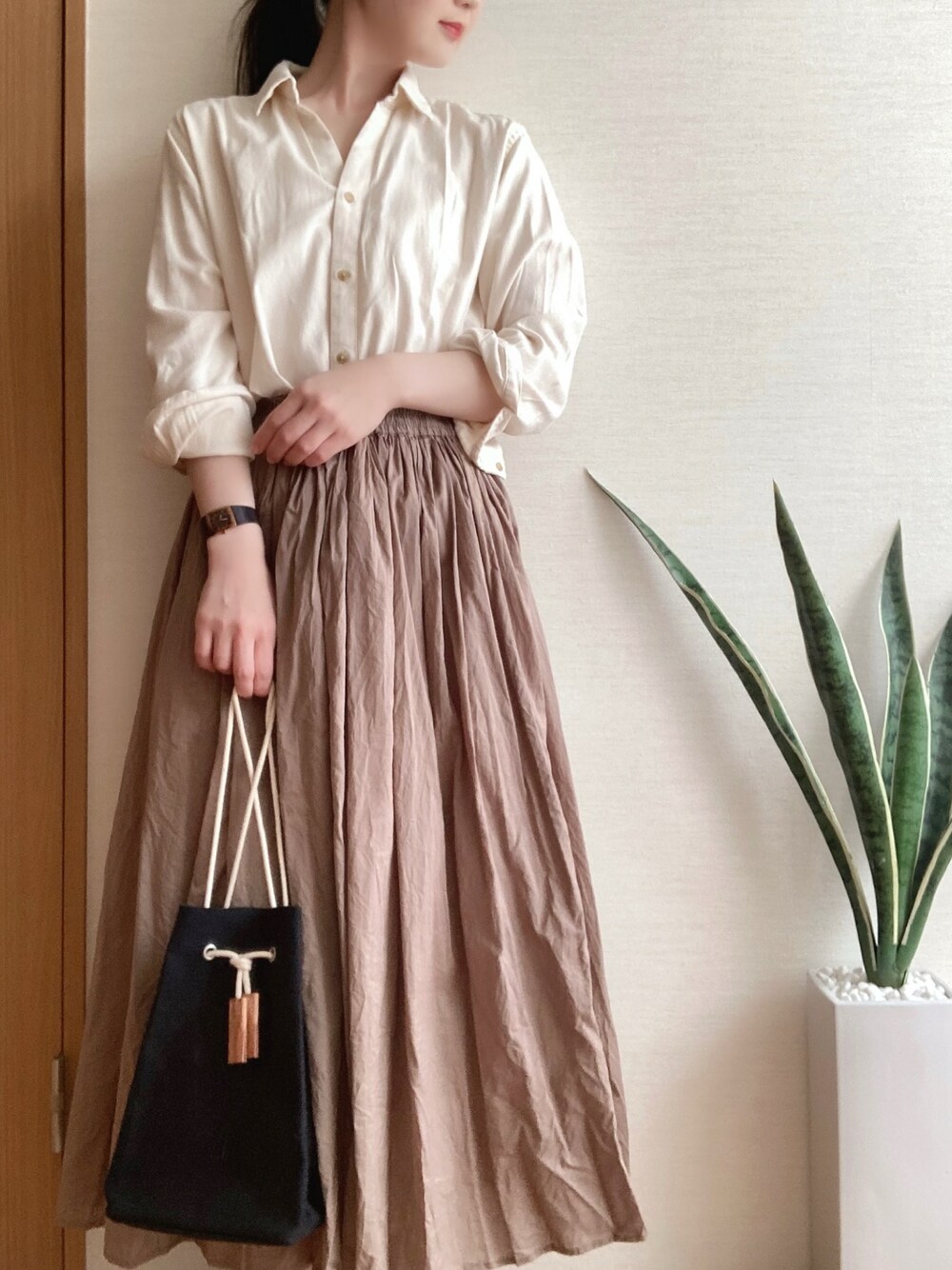 シャツとスカート.何年前のかわからない☺️ 涼しいか、ちょっと肌寒いか、くらいの日はシャツが楽です テンベアのゲームポーチはもう売ってないみたい.