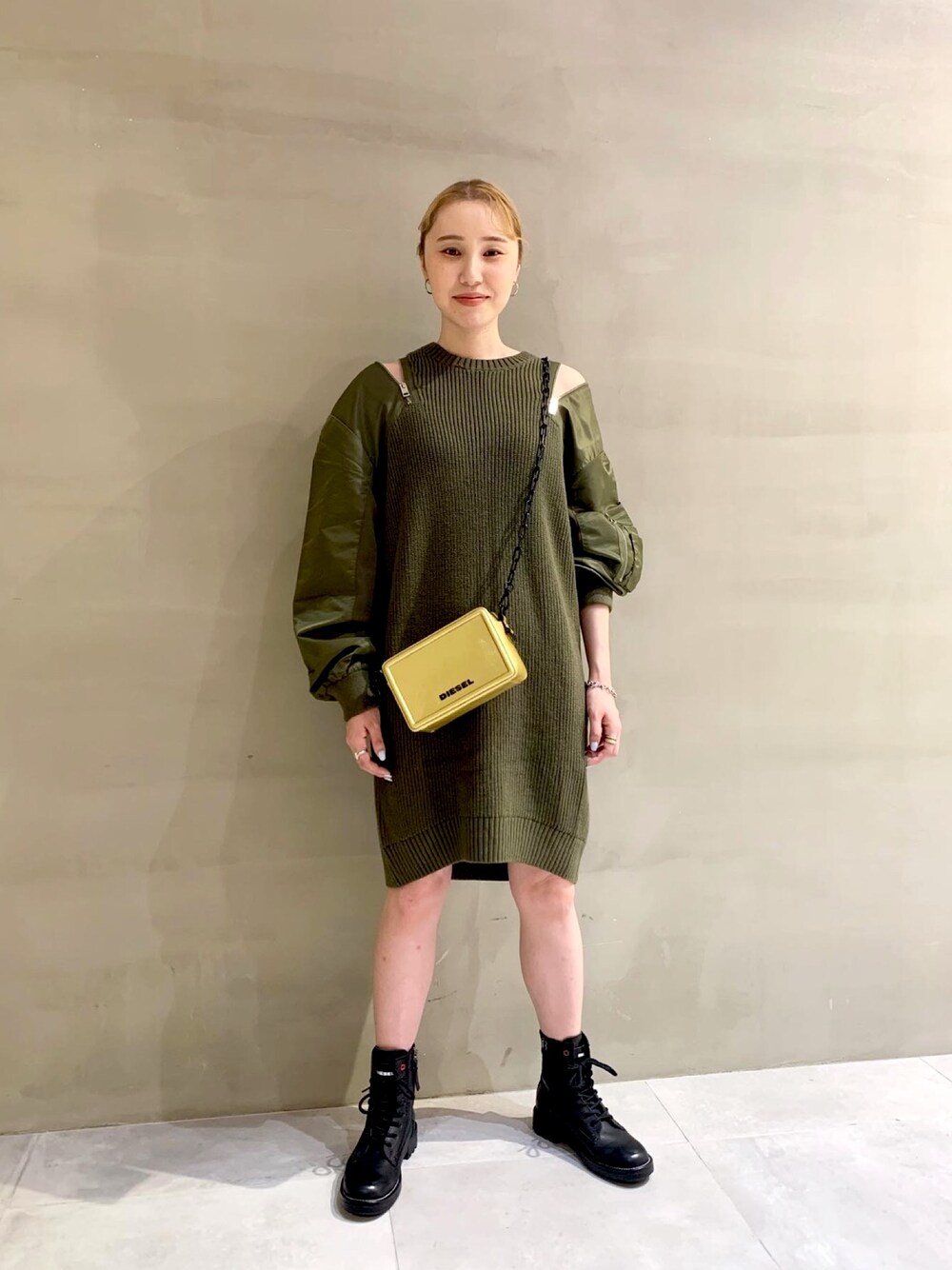 DIESEL FW 新作アイテム‼︎ ニットワンピースはジップ付きなので、肩をチラ見せしたりと色んな使い方ができます◎ カーキのカラーと編み上げブーツを合わせたミニタリーコーデがかわいい♡ うめだ阪急DIESELのInstagram ☞ hankyu_flagship_dieselstore
