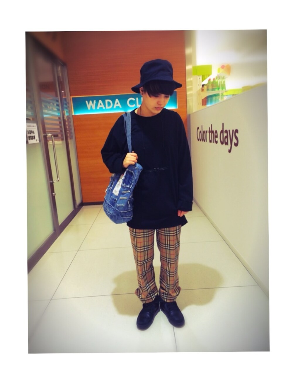 Hat:STUSSY Tops:no brand Pants:Burberry Shoes:adidas Bag:used Other:Vivienne Westwood,used パンツが足元で余る感じがすき😋💕 病院の前で撮ってた、笑