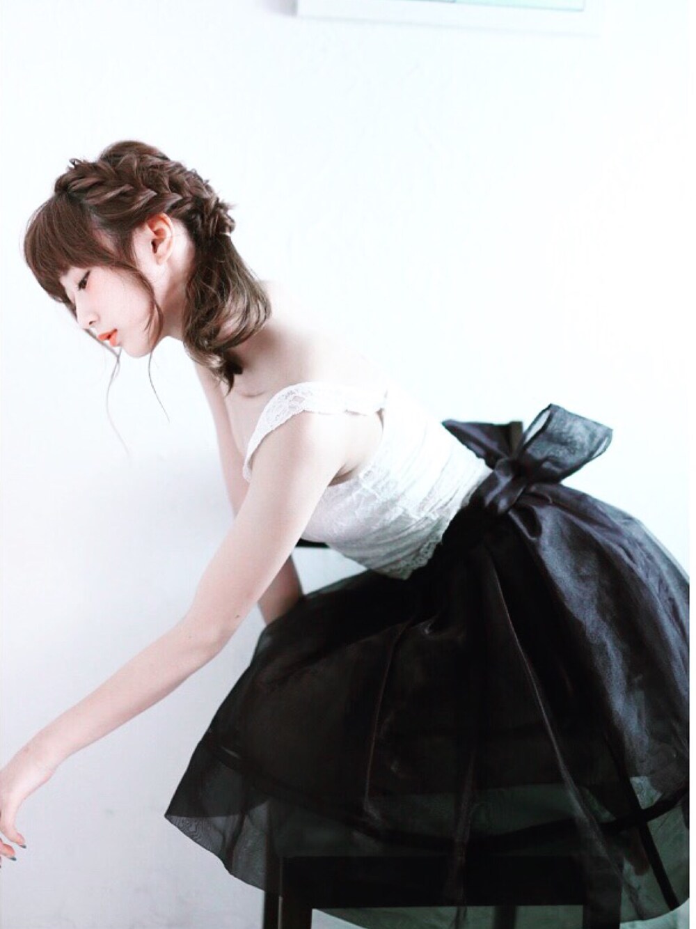 レースビスチェとふわりとしたオーガンジースカートでアンティークな雰囲気