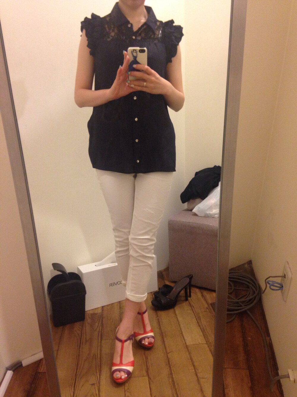 久しぶりに引っ張り出してきたシリーズ。 今日は片道一時間半かけて通っている美容鍼へ! そんでパパッと買い物して👗 また1時間かけて美容院へ💨💨 いそがしー 最近そでがフリフリしてるトップス流行ってるみたいなので そういえば持っていたな〜と💡 甘々は嫌いなので 白スキニーで爽やかに☆ 差し色にカリアングのサンダル。 これも4.5年前に買ったような〜? まだまだはける👍✨ バイカラーいま流行ってないけど 足元くらいなら大丈夫かな💦