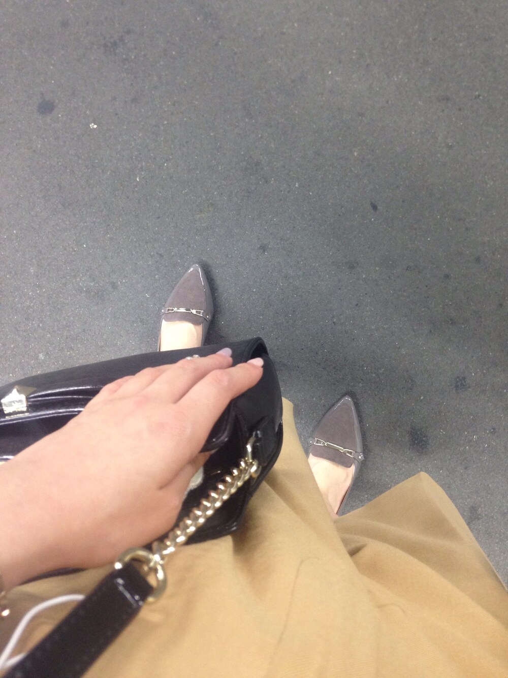 ネイルとシューズのカラーリンク♡笑 トップスはハリのある白シャツをイン。 キャメルのワイドパンツを探しまくって ようやく辿り着きました。