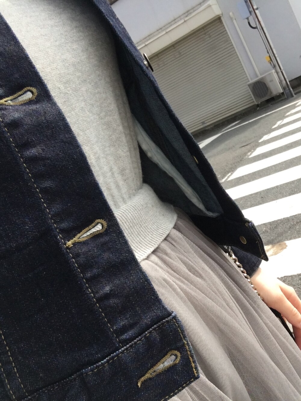秋晴れってステキ♡ デニムは流行の生デニム風 ワンウォッシュの濃いめなんだけど 色移りが心配です😱 羽織は黒レザーと迷いましたが まだ少し重いかな、と思い。